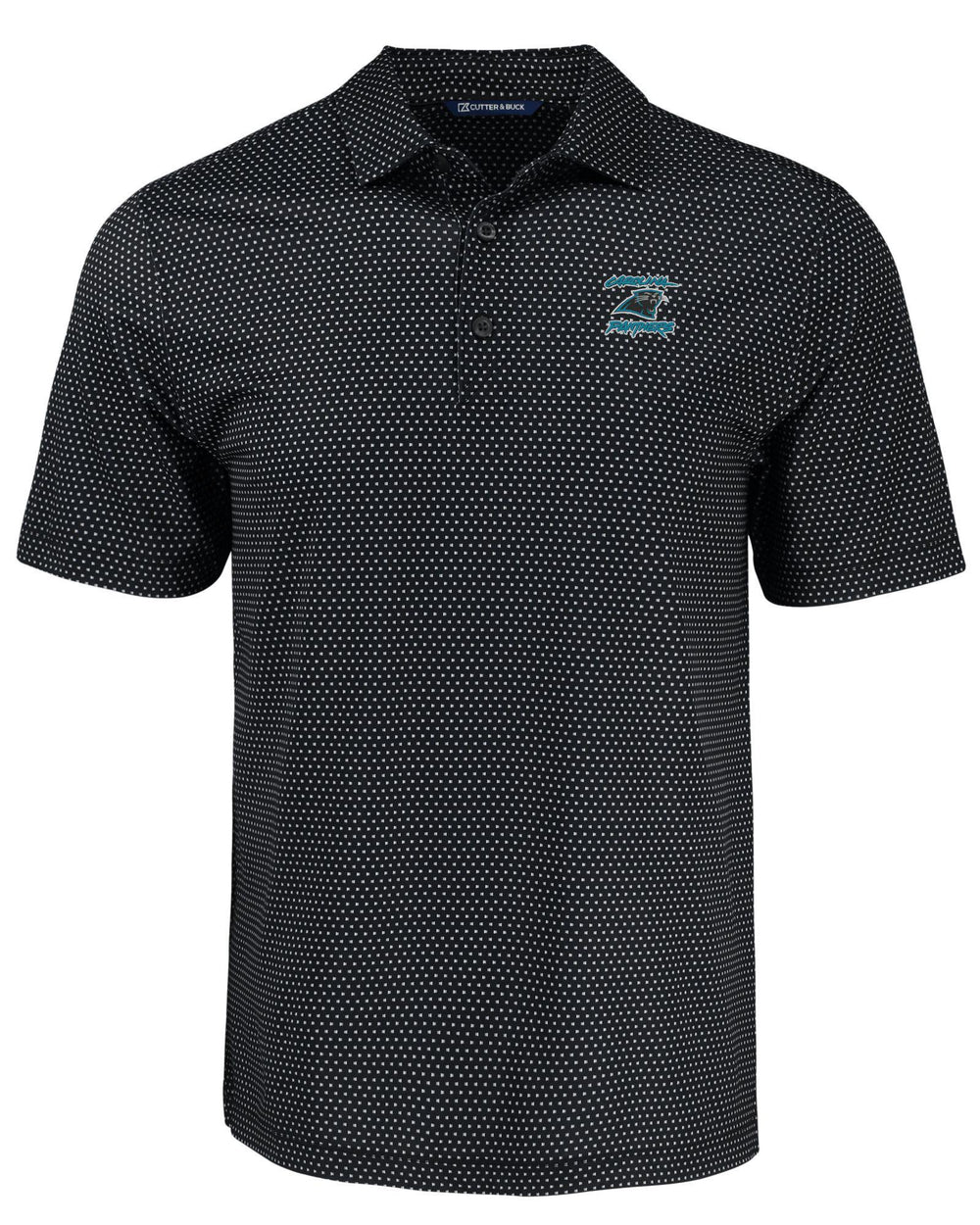 Panthers Cutter and Buck Men's Black Pike Eco Shadow Check Print Polo