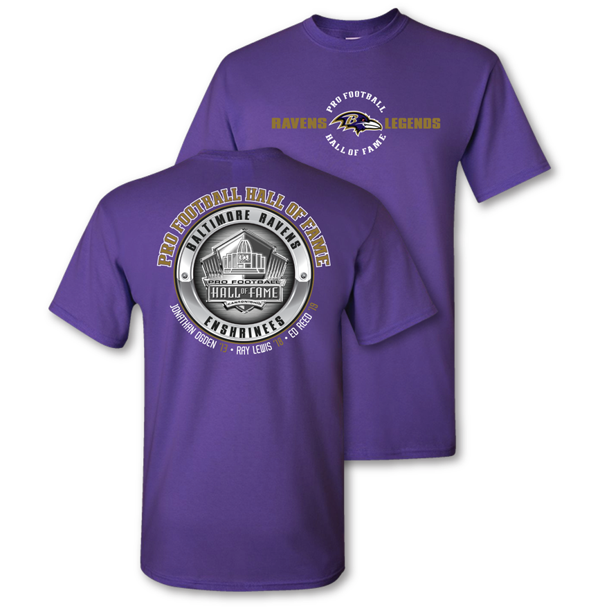 Celebrate all of the Baltimore Ravens Hall of Famers with this exclusive, one-of-a-kind, team color, t-shirt from the Pro Football Hall of Fame!