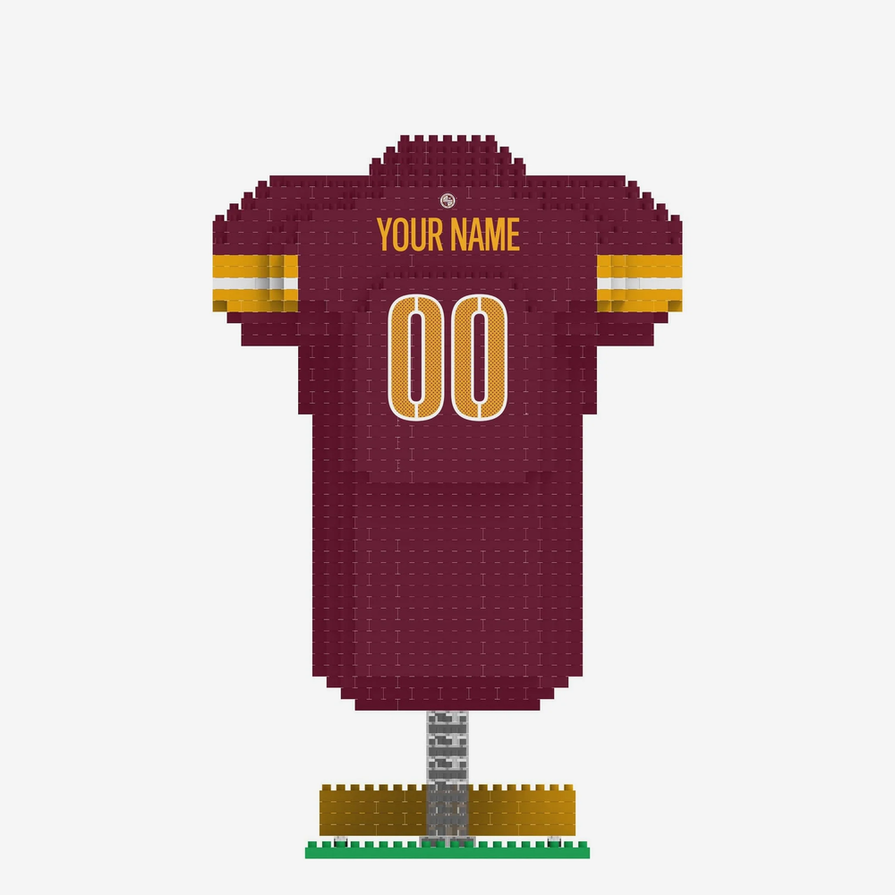 - Construction toy that assembles into a team-colored game day jersey, making an excellent addition to your collection