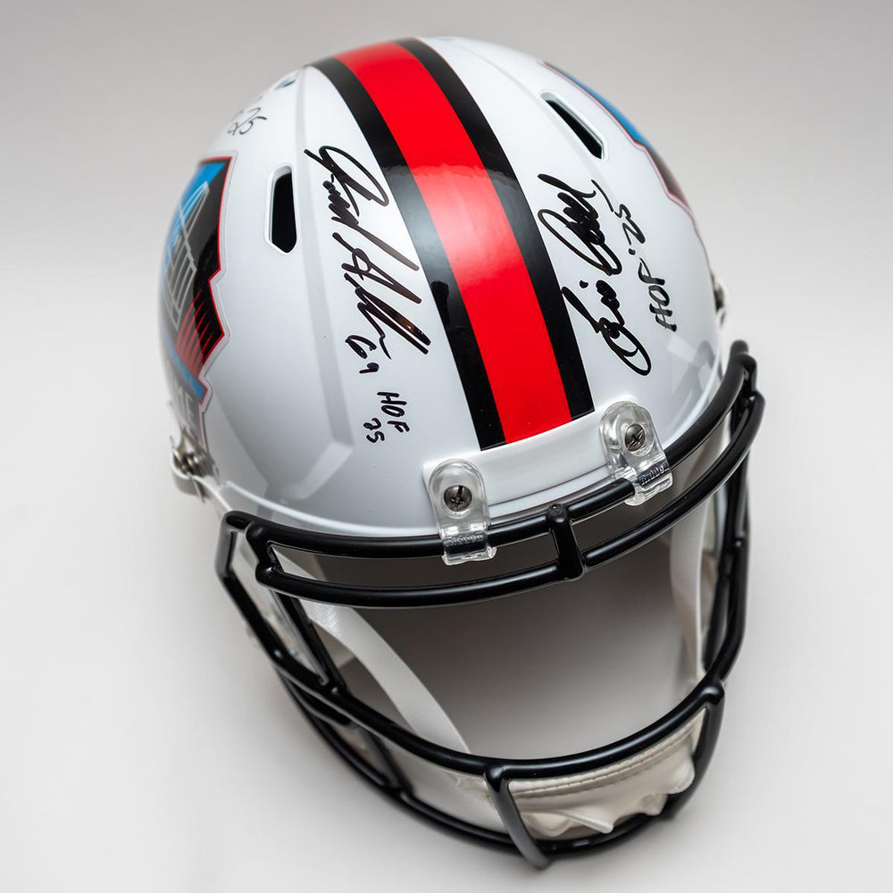 Commemorate the newest members of the Pro Football Hall of Fame with the Class of 2025 Autographed Hall of Fame White Replica Helmet!