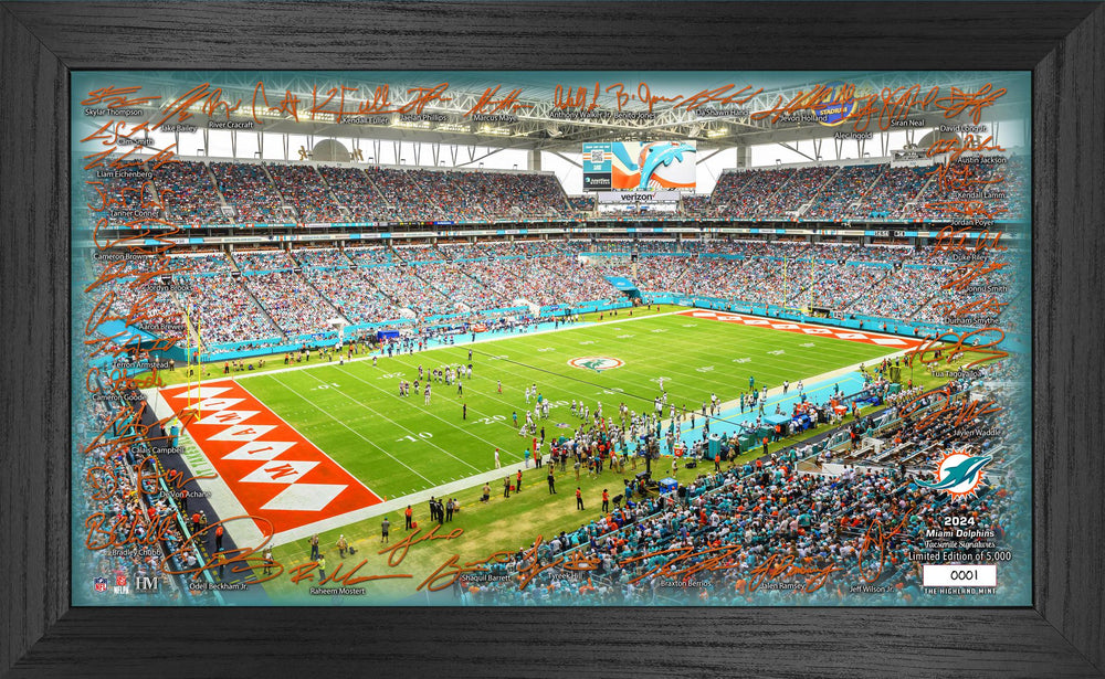 - This unique 12"x20" Signature Gridiron collectible frame features under plexiglass an individually hand numbered home gridiron (field) print with each respective 2024 team rosters, players facsimile (replica) signatures (autographs).