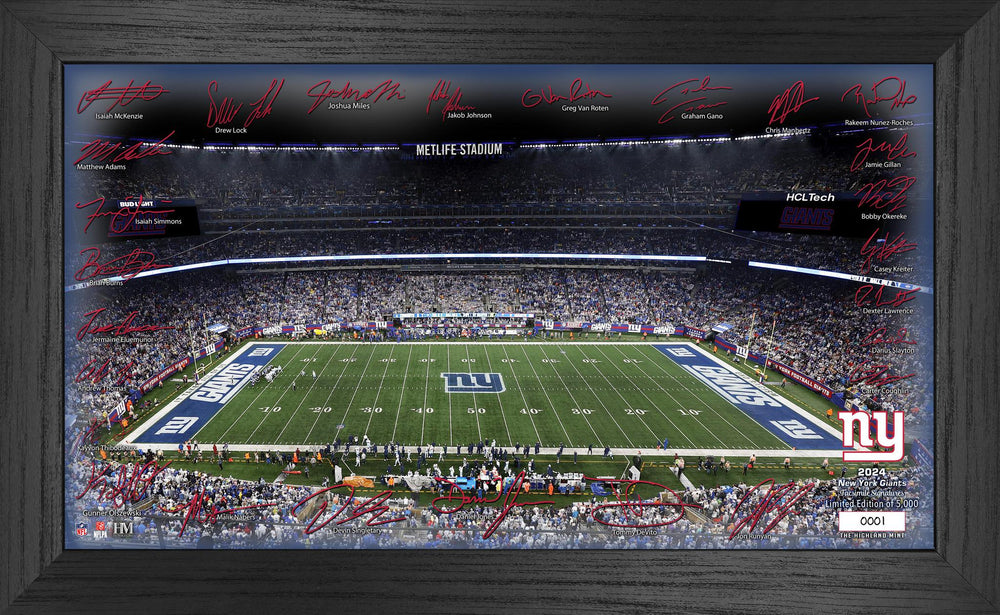 - This unique 12"x20" Signature Gridiron collectible frame features under plexiglass an individually hand numbered home gridiron (field) print with each respective 2024 team rosters, players facsimile (replica) signatures (autographs).