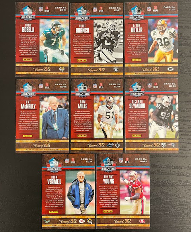 - 8 cards honoring one of the extraordinary members of the Pro Football Hall of Fame's Class of 2022