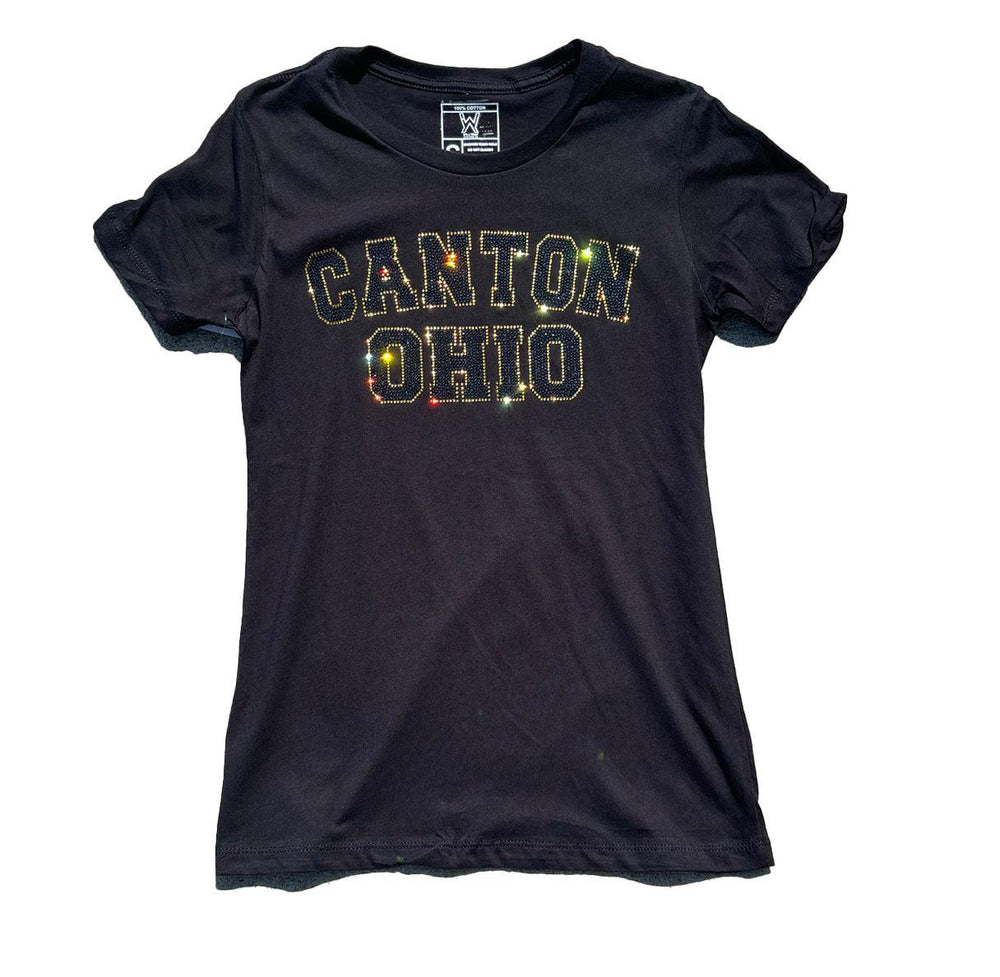Show off your sparkle and your city pride with the Canton Women's Bling T-Shirt! This stylish tee features eye-catching rhinestone accents that spell out "Canton" across the front, celebrating the proud home of the Pro Football Hall of Fame. Made with a soft, comfortable fabric and a flattering fit, it’s perfect for game day, Hall of Fame weekend, or everyday wear. Add a little glam to your football fandom with this standout piece!