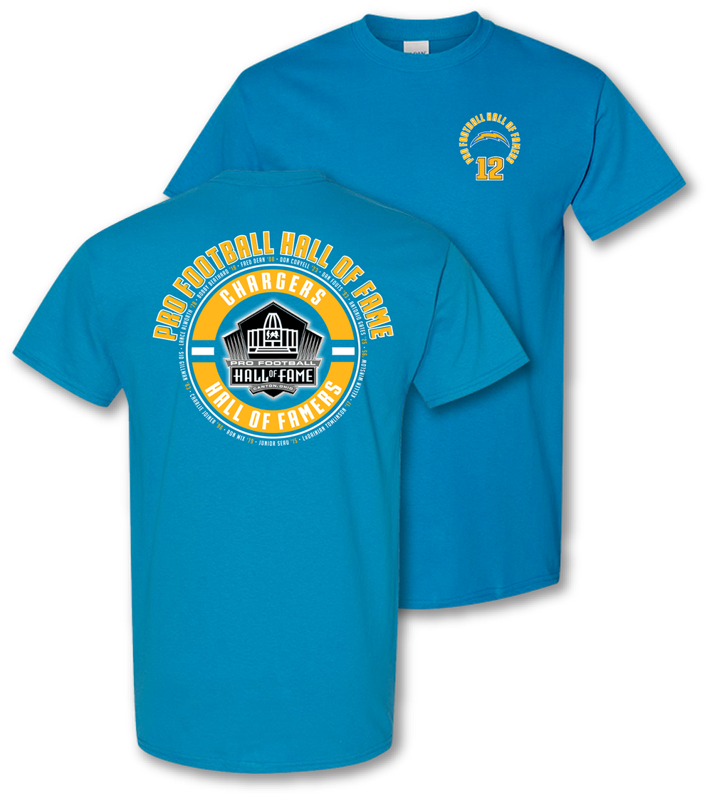 Celebrate the Chargers Hall of Famers with this exclusive, one-of-a-kind, team color, t-shirt from the Pro Football Hall of Fame!