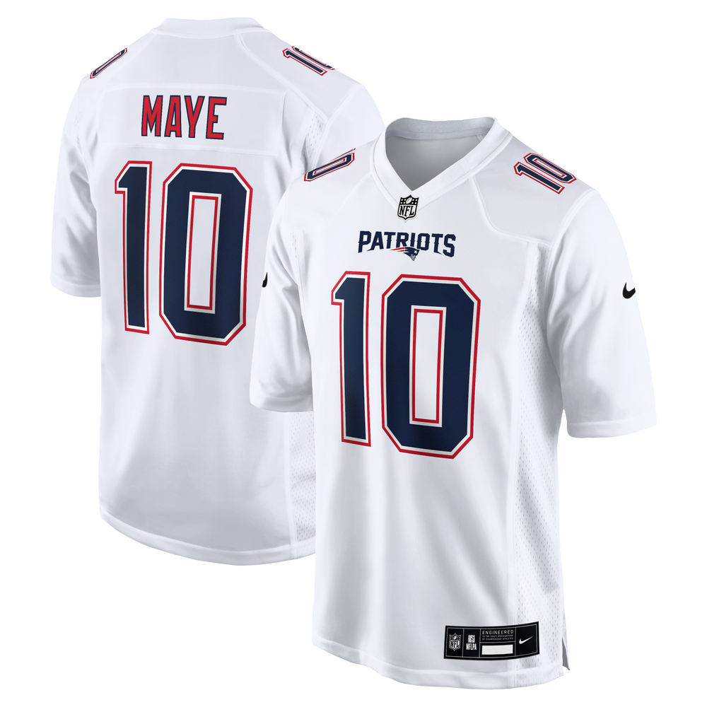 Patriots Drake Maye Men's Tundra White Nike Game Jersey