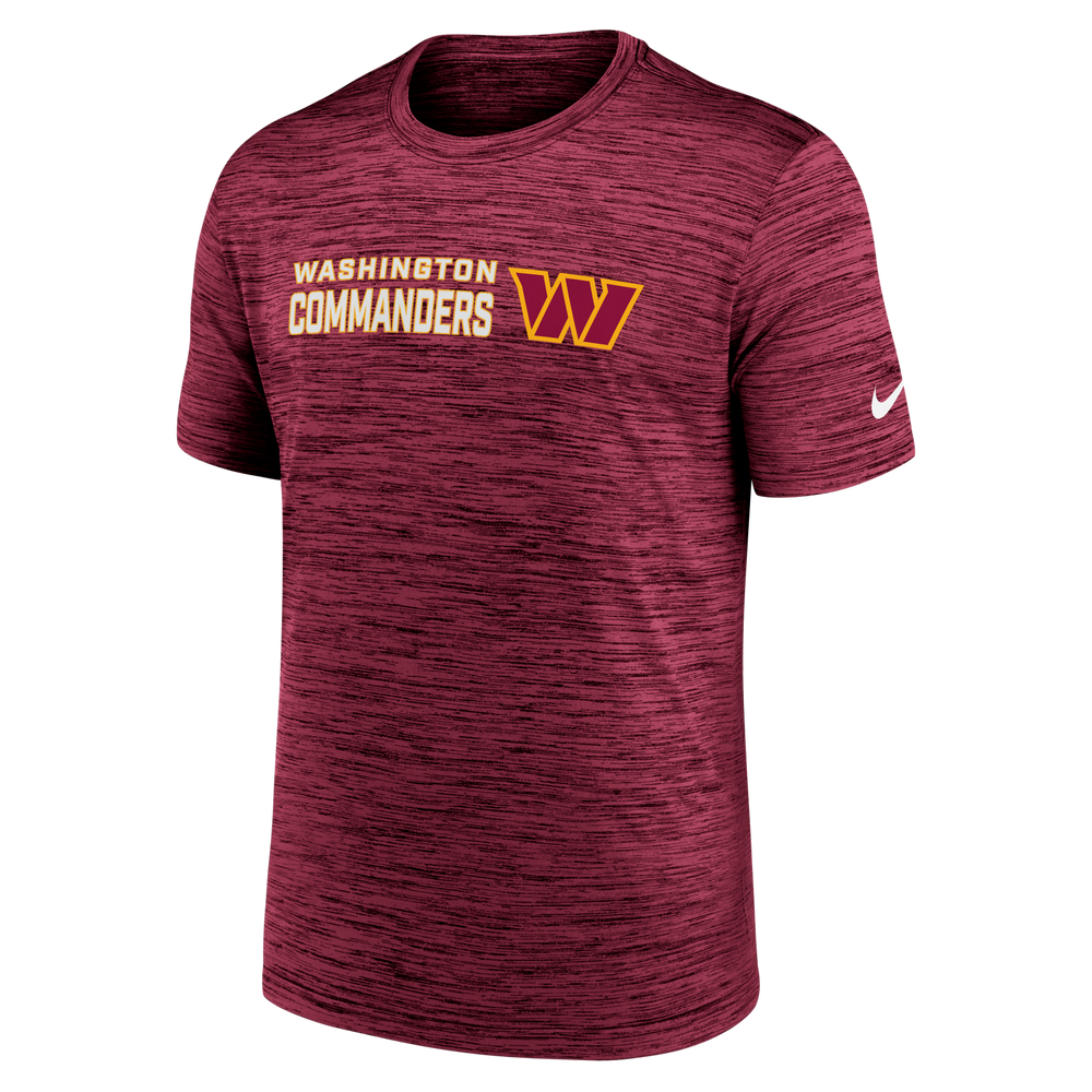 Rep your team in style with the Washington Commanders Men’s Nike Velocity T-Shirt. Designed with lightweight, sweat-wicking fabric, this tee keeps you cool and comfortable from kickoff to the final whistle. Featuring bold Commanders graphics across the chest, it’s the perfect way to showcase your team pride whether you’re at the game, in the gym, or on the go.