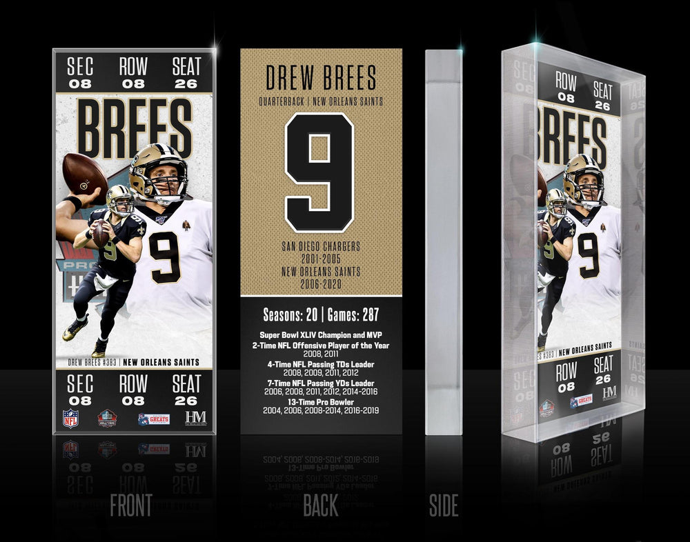 - The New Orleans Saints Drew Brees Pro Football Hall of Fame Induction 3D Acrylic Souvenir Ticket Block.